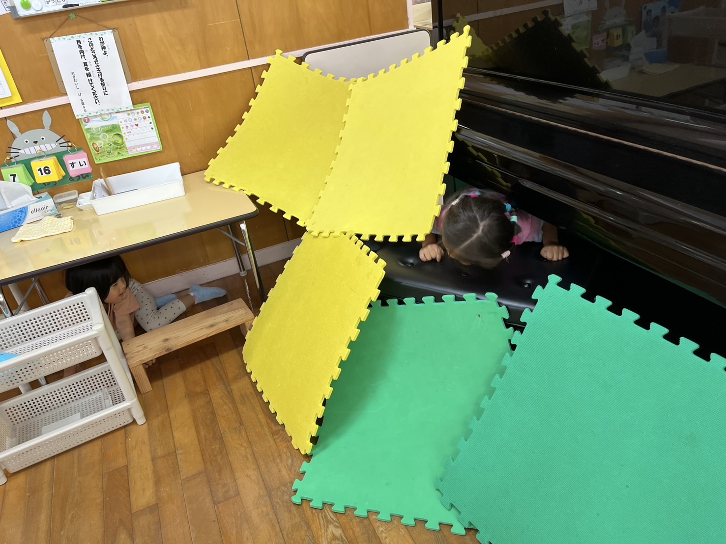 1階の保育室では、自由あそびの時間になると、好きな遊びがある部屋へ自由に行き、