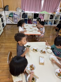 つぼみ組~ひまわり組は、箸を使っての食事にも慣れ持ち方も安定しています。
