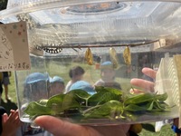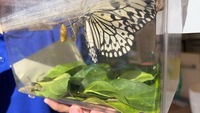 興味津々。無事に育ったオオゴマダラは、青空に向かって元気よく飛んでいきました。