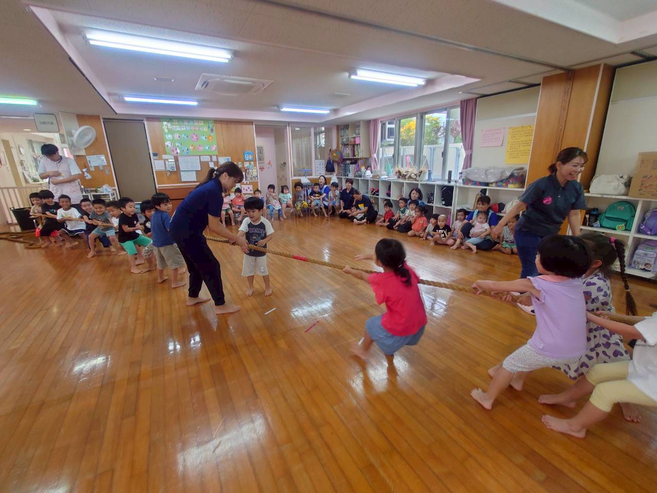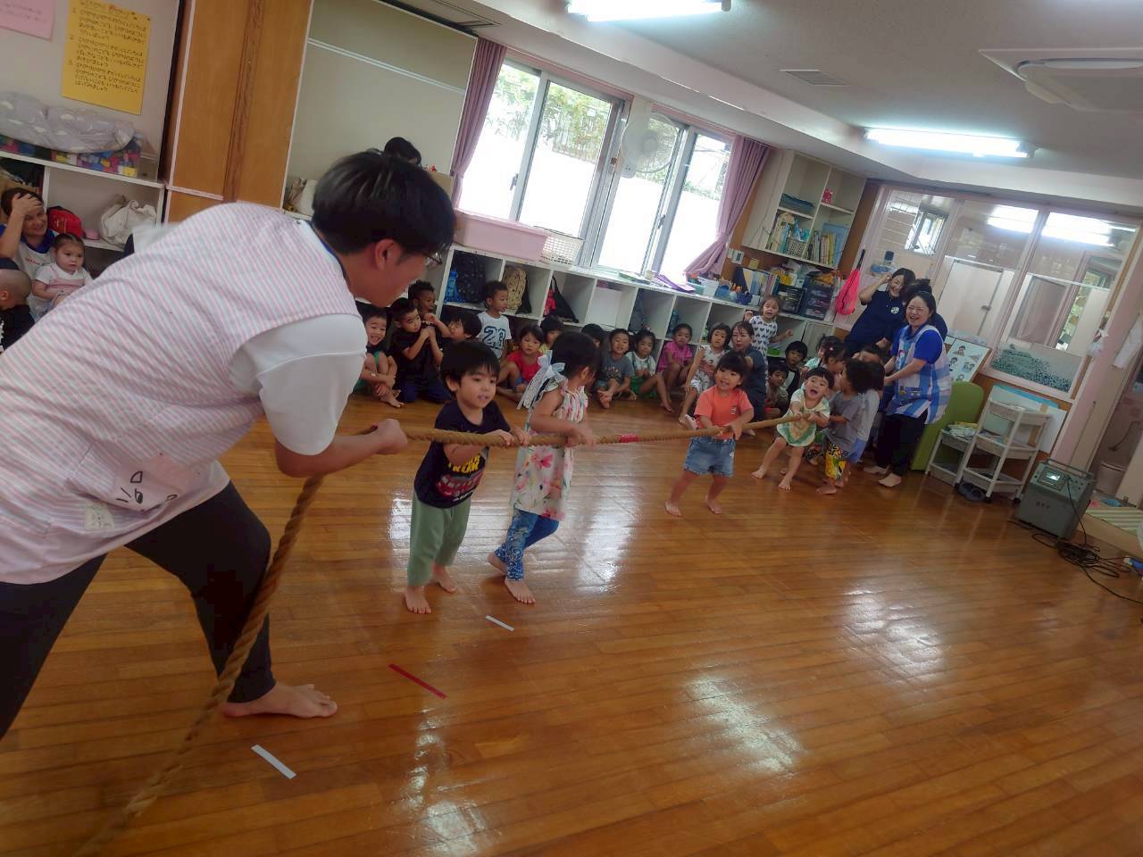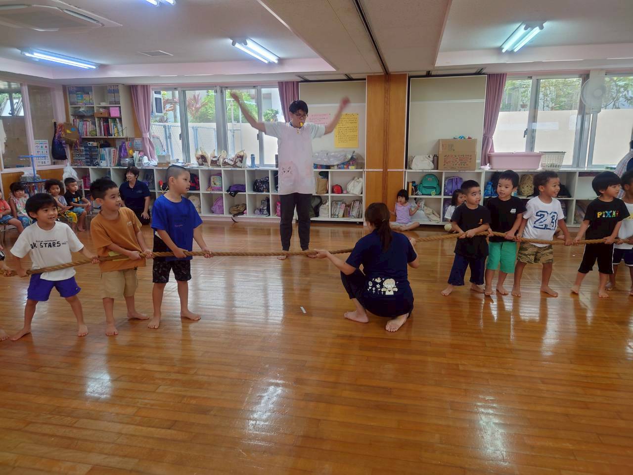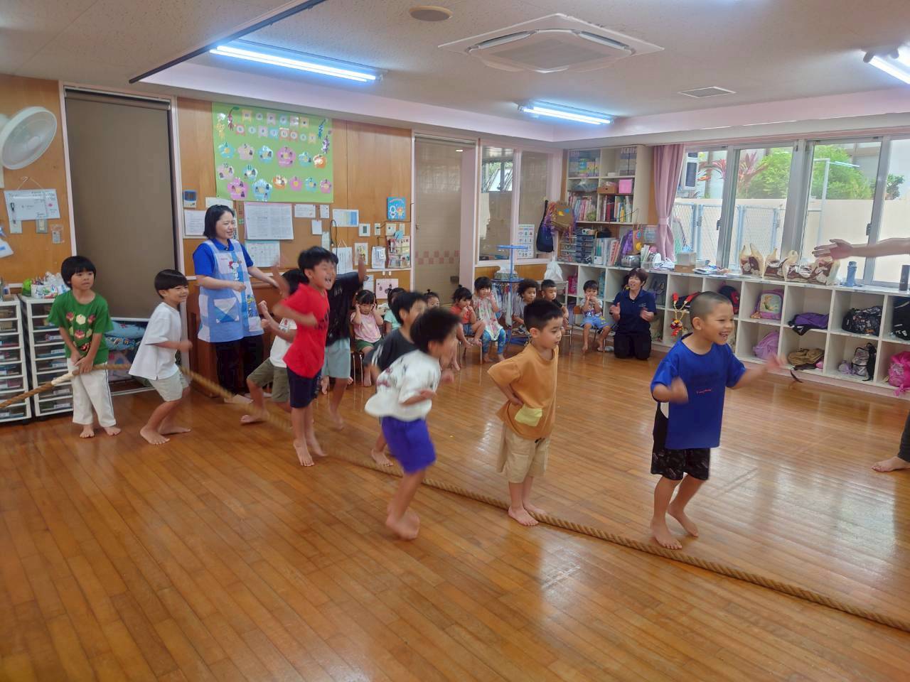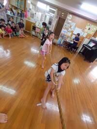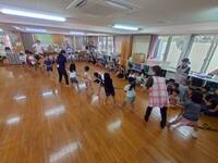 今日は、運動会ごっこをしました。あい組さんのリトミックを年長さんが一緒に楽しんだり、