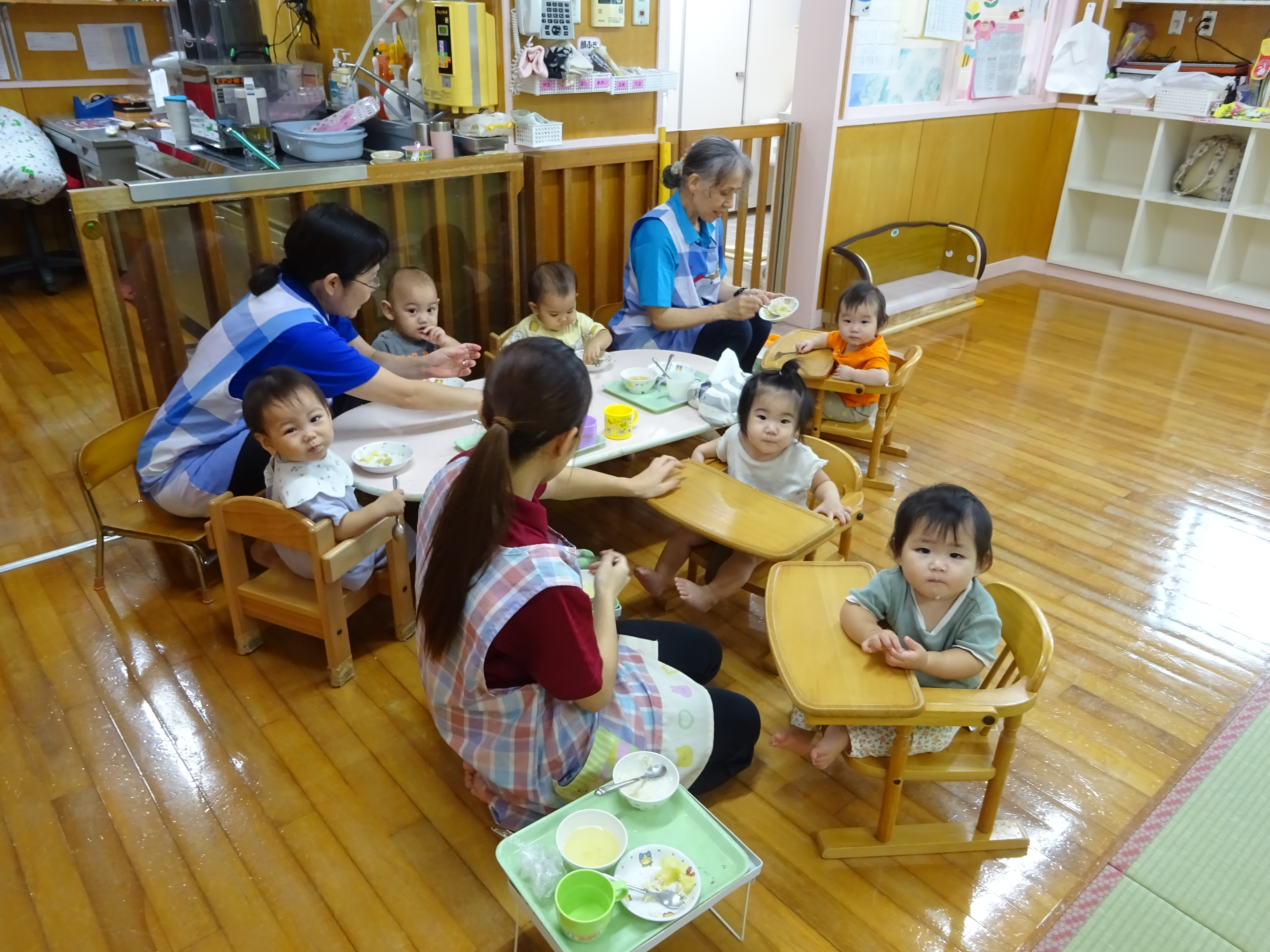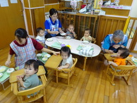 ひかり組さんは、ちょうど食事の時間。食べている様子を写したいけど、