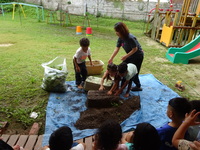 ゆり組は、じゃがいもの収穫中 ひまわり組はいろんな遊びを友だちと展開していました。
