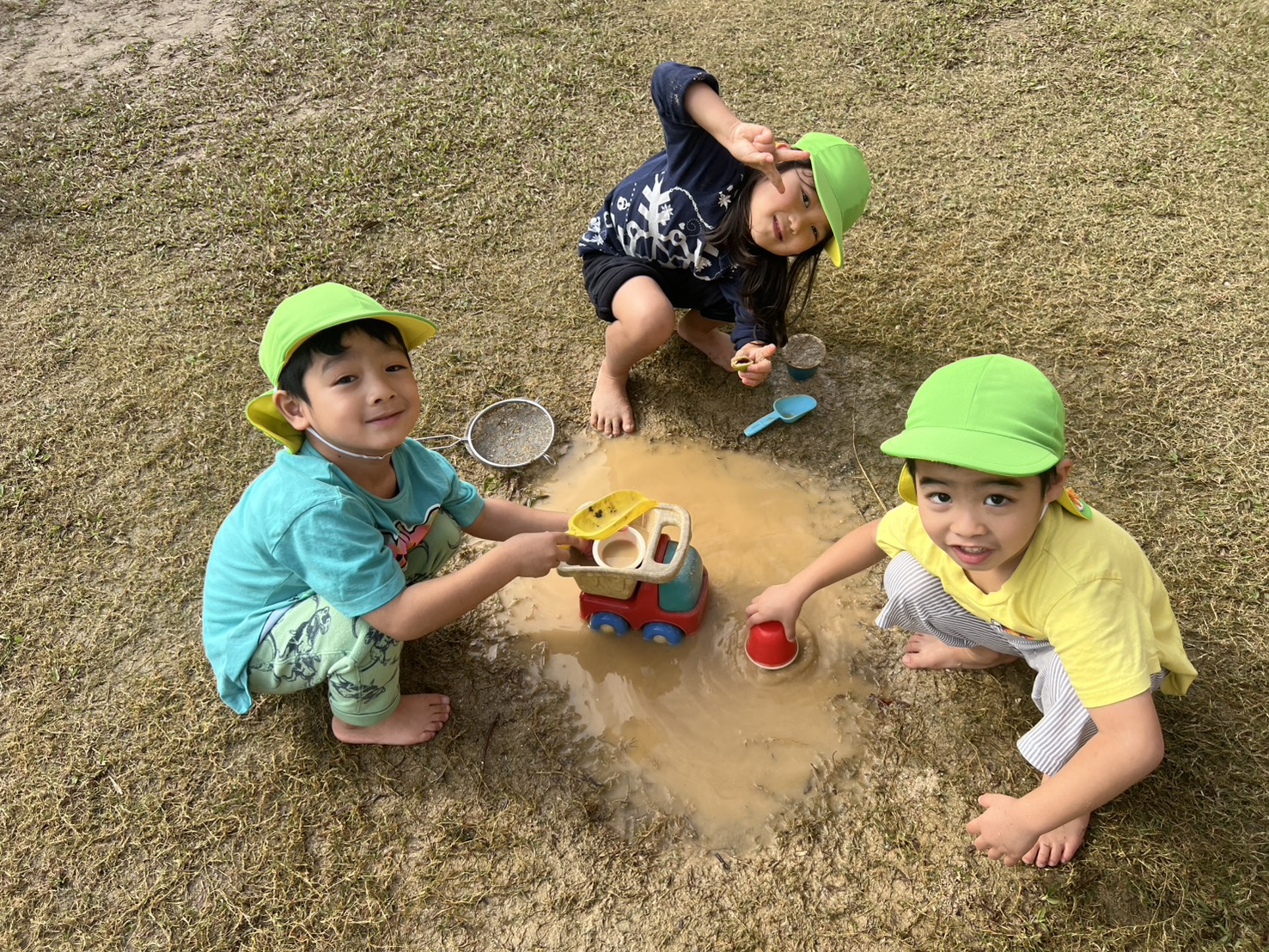 ゆり・ひまわり組さんが園庭あそびをたっぷり楽しんでいました。