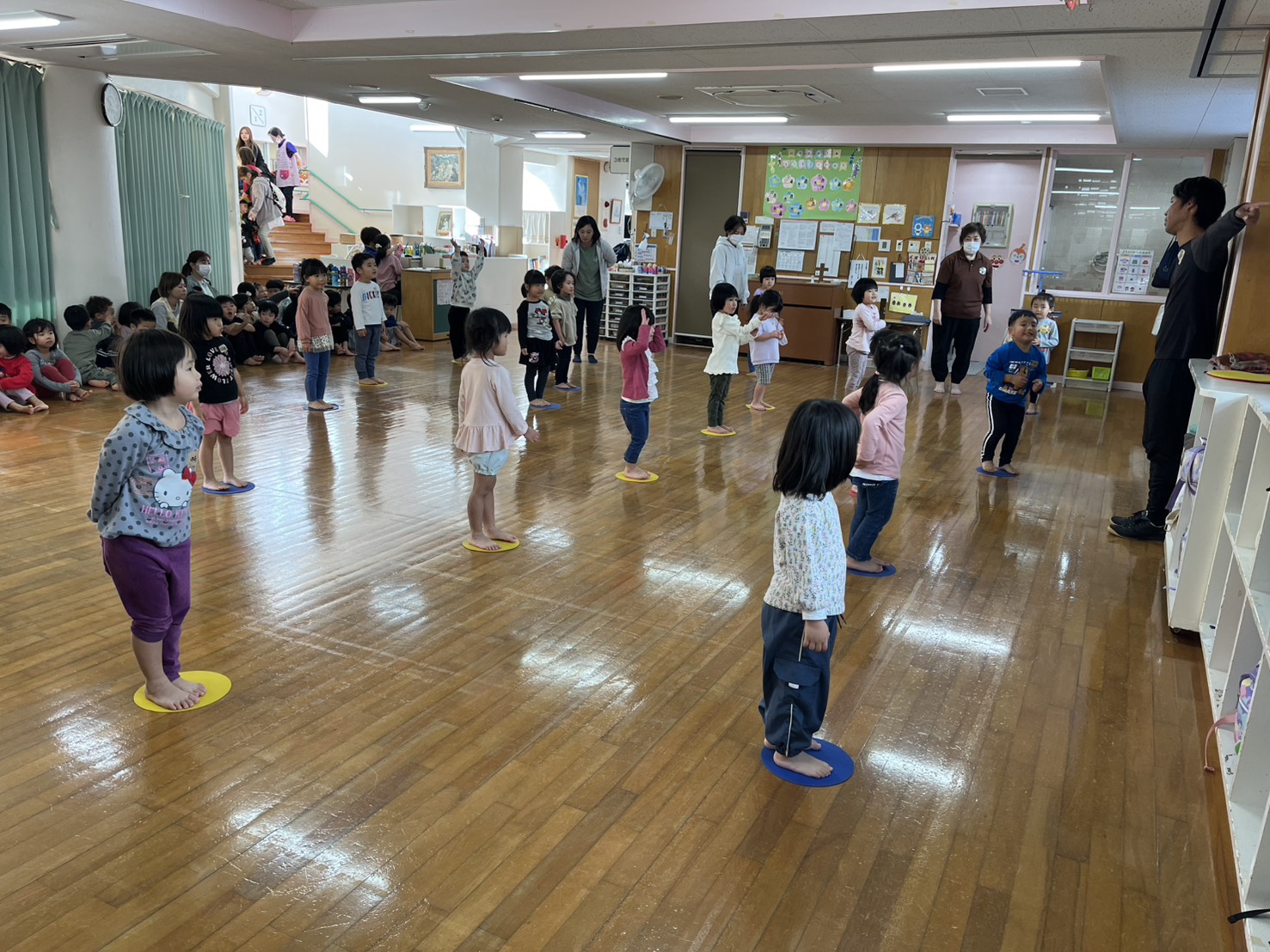☆つぼみ組:あつき先生の手を出した方にジャンプ! みぎ、ひだり、うえ