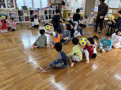☆ボールわたしゲーム~ボールが1個から2個に増えてくるよー急いでわたして!!