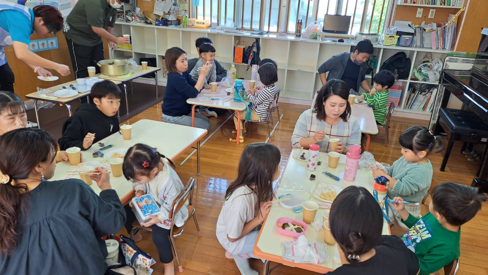 子ども達もお家の方と一緒に過ごせ、とても嬉しそうでした。子ども達を通して保護者同士もおしゃべりしたりとコミュニケーションを