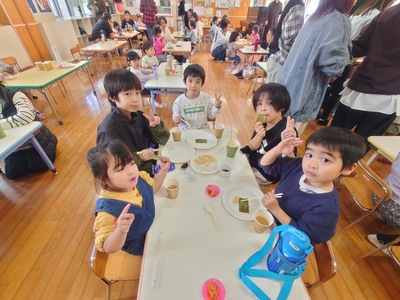 たくさんもちをついてくれた保護者のみなさんと卒園児の子たちのおかげで、12㎏のもち米すべてをつくことができました。