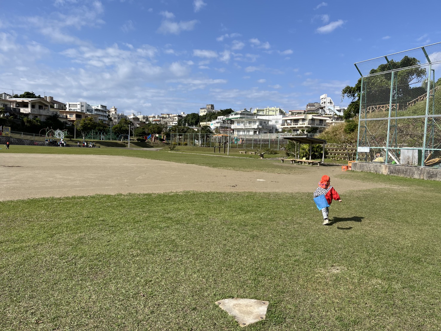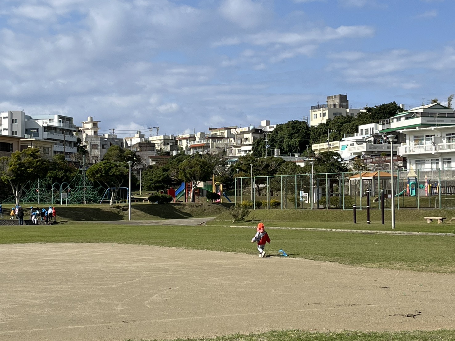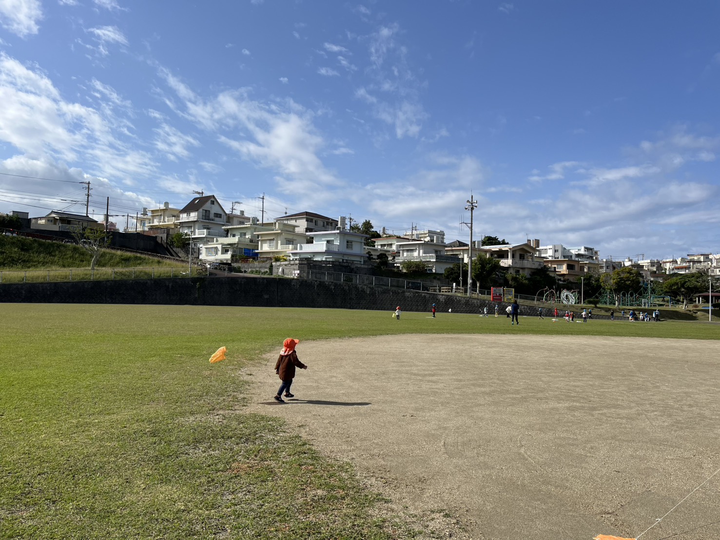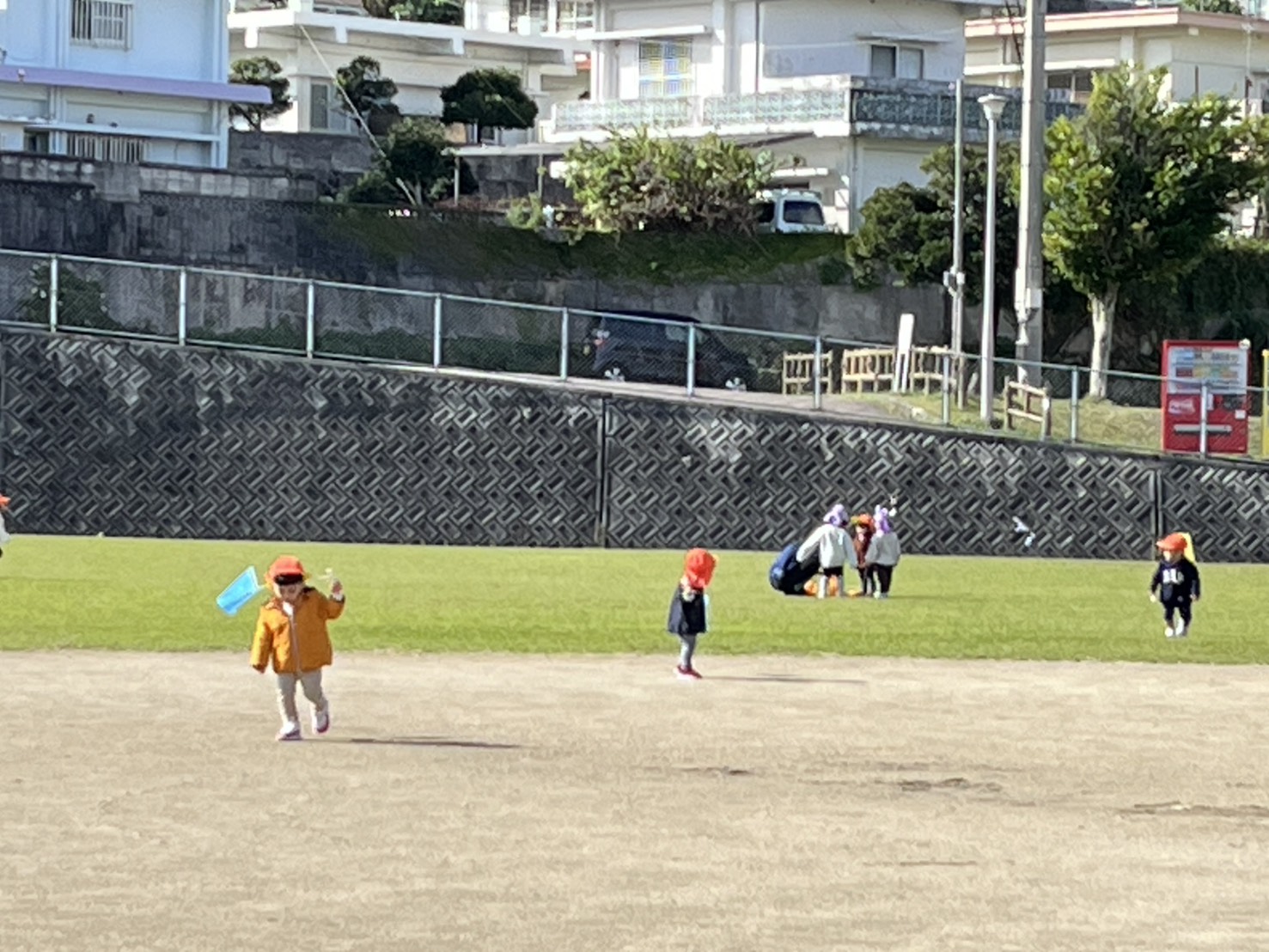あい組とわかば組さんが諸見里公園へたこあげに行きました。