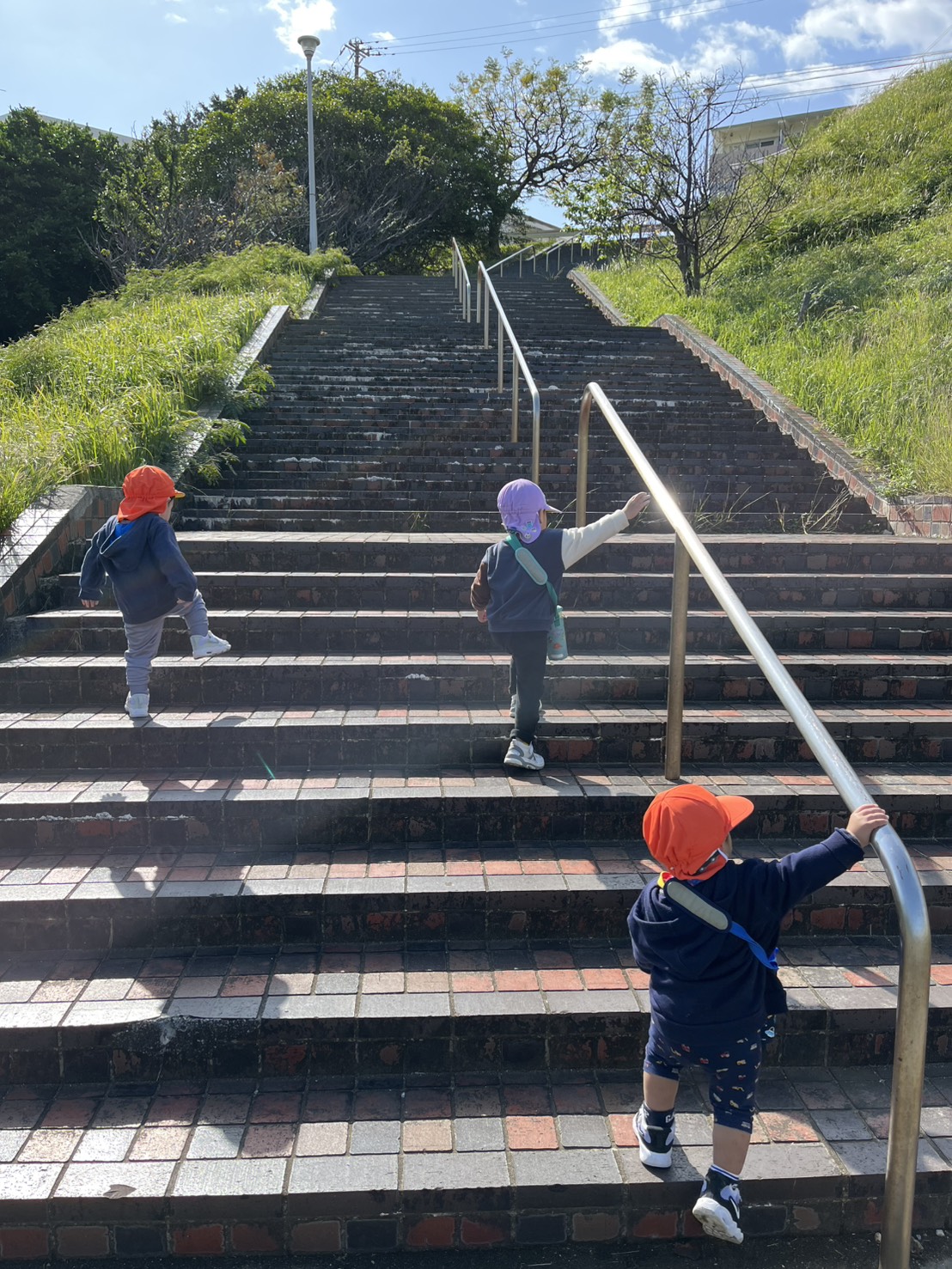 長い階段もみんなで上までのぼりました。体力がついて保育園までの往復もしっかり歩いていました。