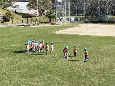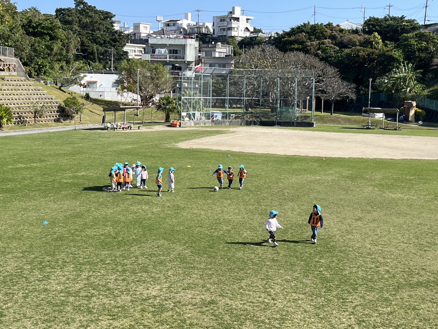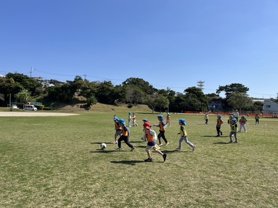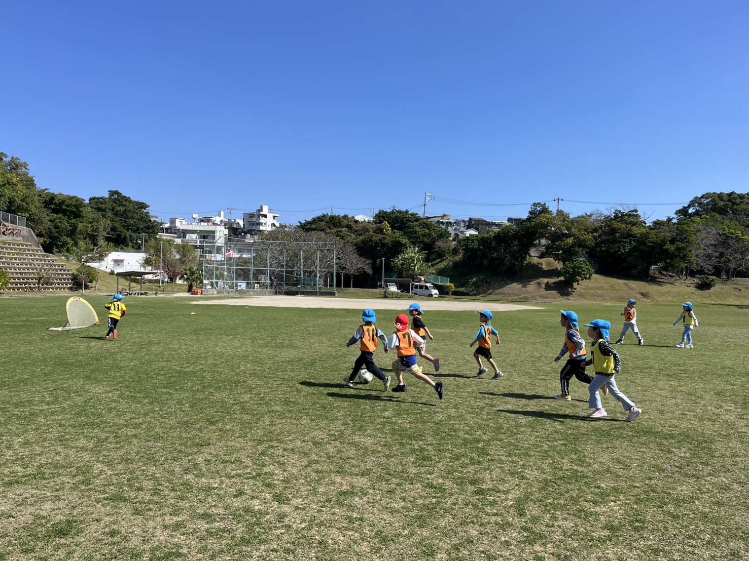今日の運動あそびも近隣の公園でサッカーをしました。