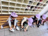 先日、玄関で靴をはいていたわかば組さん。身の回りのことが自分でできるようになってきて、